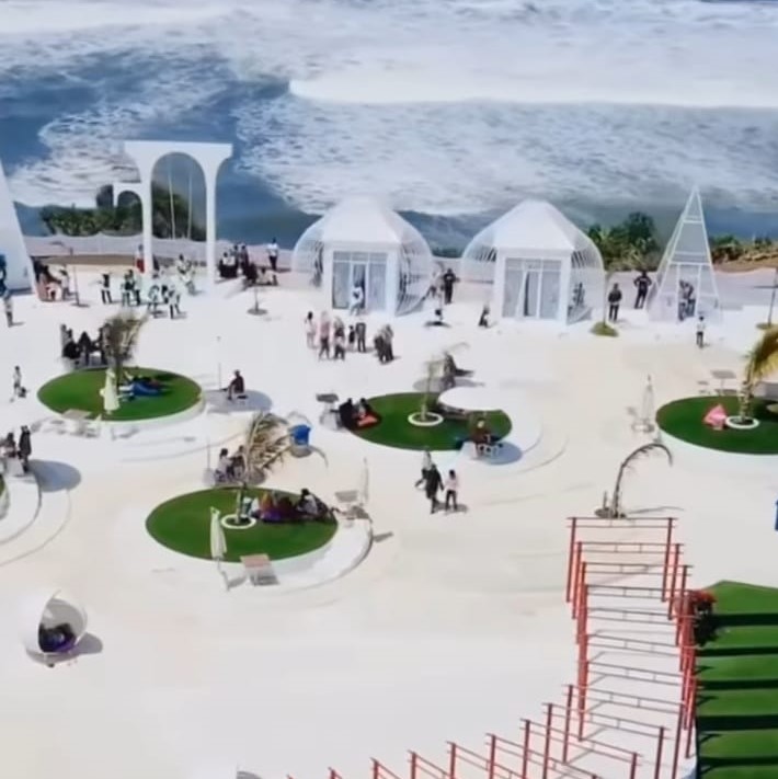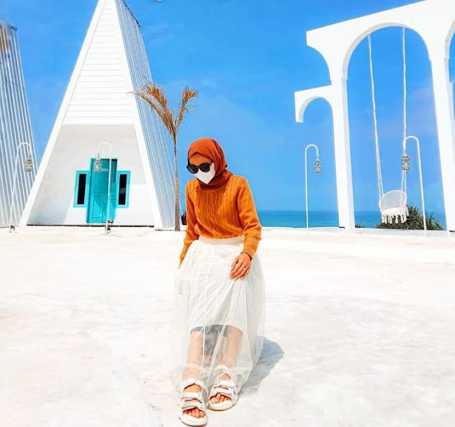 Wisata yang telah viral ini mengusung konsep dengan berbagai bangunan yang unik dan menarik, seperti bangunan rumah di Santorini Yunani dan juga nuansa tempat layaknya seperti di Bali. Anda pun bisa melihat pemandangan laut dan keindahan hamparan pasir putih yang menawan. Spot spot foto selfi yang siap menjadi latarbelakang serta keindahan lautnya yang memanjakan mata siap menemani anda saat berkunjung. Cocok untuk quality time bersama keluarga, teman ataupun pasangan anda.
